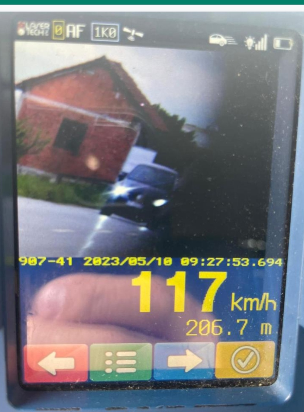 Në ora 10:05, policia ndaloi shoferin tjetër I.E (M/K) i moshës 48 vjeçar, i cili shkaktoi kundërvajtje, ku në zonën e kufizimit 80 km/h zhvillloi shpejtësi 117 km/h dhe ndaj tij policia i shqiptoi një gjobë, sipas ligjit të komunikacionit rrugor 150 euro dhe 2 pikë negative.
