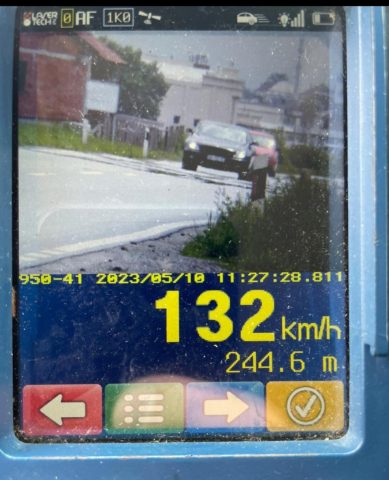 Në ora 11:28, policia ndaloi shoferin tjetër B.A (M/K) i moshës 27 vjeçar, i cili me veturë shkaktoi kundërvajtje, ku në zonën e kufizimit 80 km/h zhvilloi shpejtësi 132 km/h dhe ndaj tij policia i shqiptoi një gjobë, sipas ligjit të komunikacionit rrugor 300 euro, 3 pikë negative dhe tre (3) muaj masë mbrojtëse, heqje e patent shoferit.