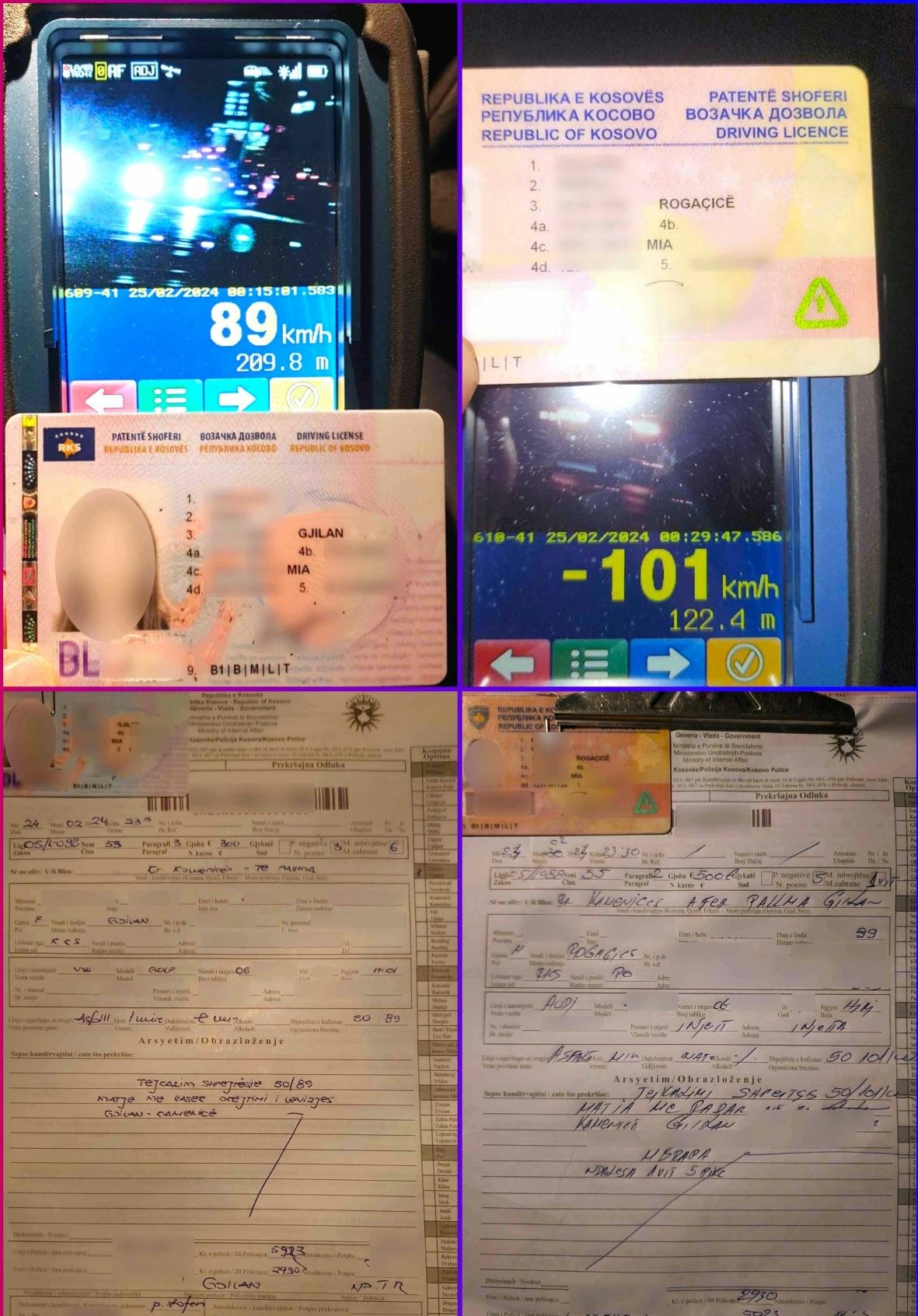 Njësiti rajonal i trafikut rrugor në Gjilan në kuadër të zbatimit të planit operativ për siguri në trafikun rrugor, në pika të kontrollit të automjeteve me radar në dy raste të ndara kanë hasur dy kundërvajtës duke mos respektuar kufizimin e shpejtësisë.