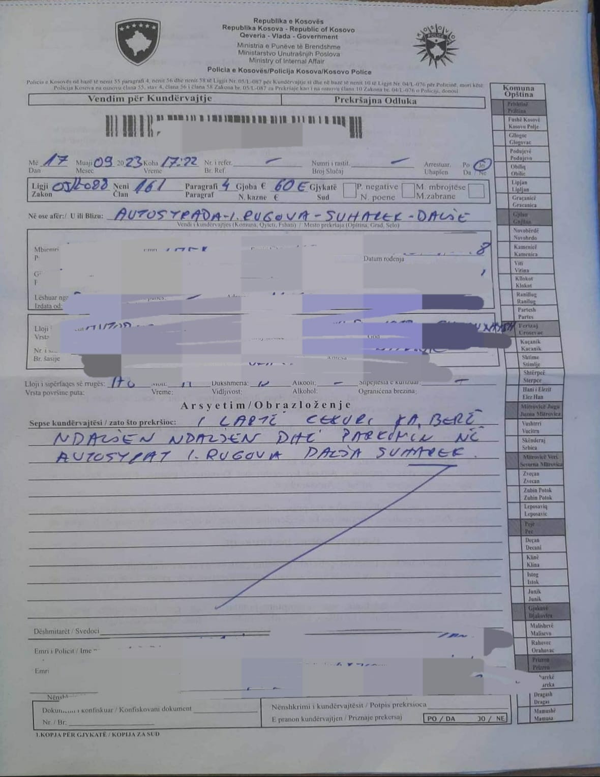 Si shkak i kësaj, policia ka gjobitur të gjithë shoferët si dhe i ka urdhëruar të largohen nga ai lokacion, përcjell Arbresh.info.