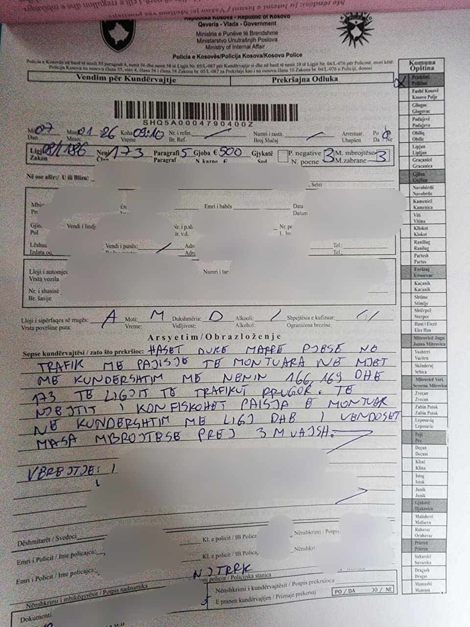 “Prishtinë, 07 Janar 2026– Njësiti i Trafikut të Kryeqytetit ka ndërmarrë veprime policore ndaj një shoferi, i cili ishte hasur duke qarkulluar me automjet, në të cilin kishte vendosur pajisje ndriçuese (drita rotative) në kundërshtim me dispozitat ligjore në fuqi. Gjatë kontrollit në trafik është konstatuar se pajisjet e ndriçimit të vendosura në automjet nuk ishin të lejuara për përdorim, ndërsa shoferi me to kishte dalë në qarkullim, duke shkelur kështu rregullat e trafikut rrugor.”, thuhet në njoftim./Arbresh.info