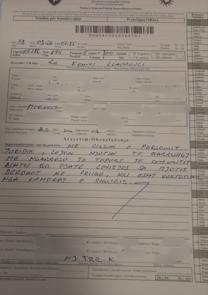 Policia bën të ditur se gjoba u shqiptua për ndotje të rrugës, rast ky që ishte identifikuar nga kamerat, transmeton Klankosova.tv.