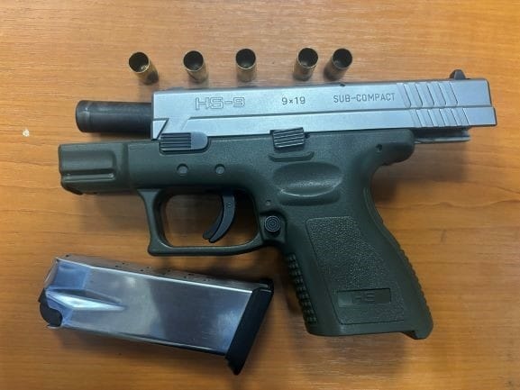 Sipas njoftimit, gjatë kontrollit nga i dyshuari F.R është konfiskuar një armë pistoletë e llojit HS-9 SUB COMPACT e kalibrit 9x19mm, një karikator dhe pesë gëzhoja, shkruan Arbresh.info.