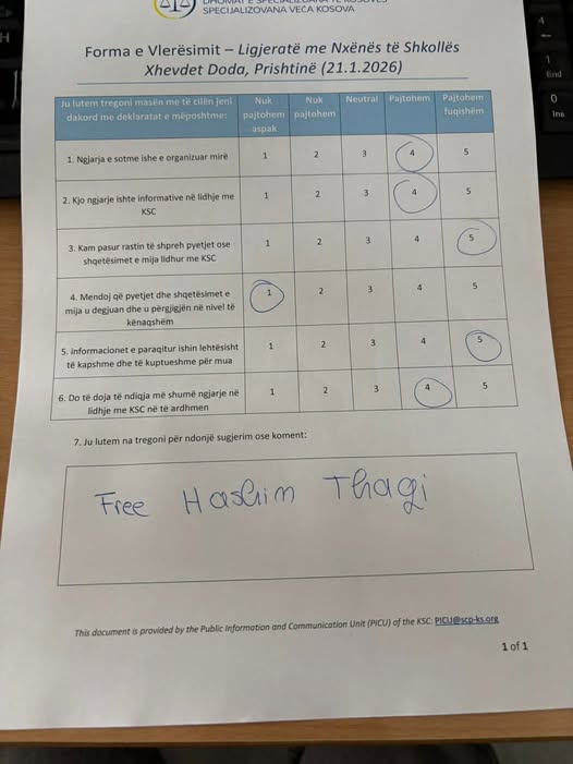 Në fund, tek komentet njëri prej nxënësve ka kërkuar lirimin e Hashim Thaçit.