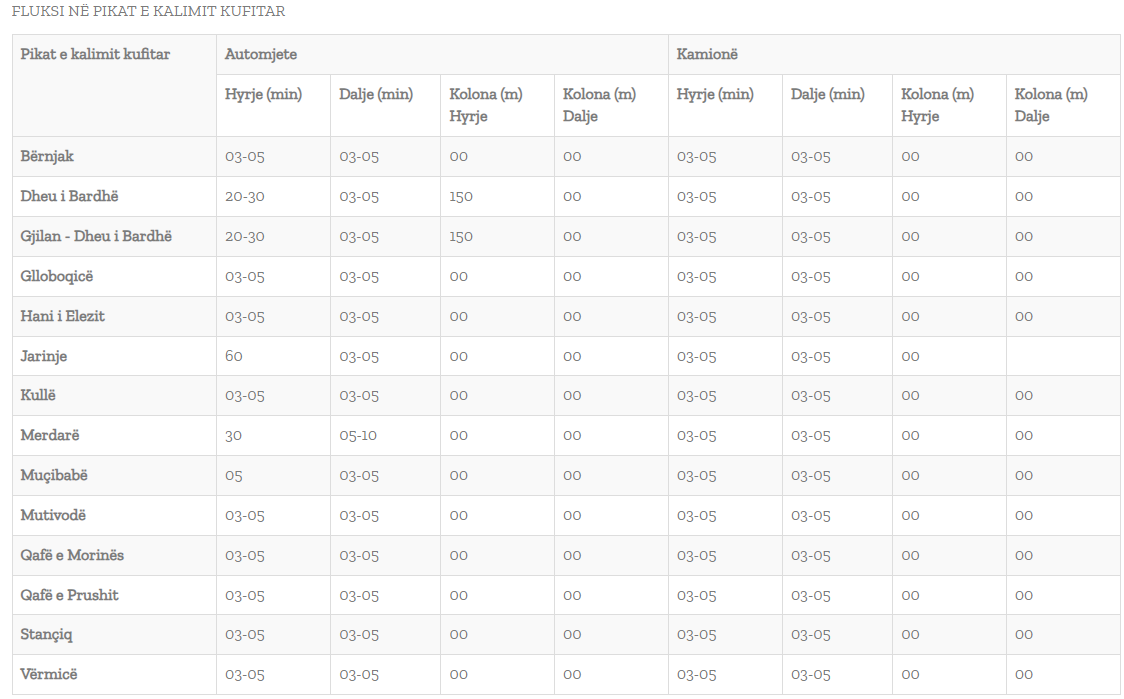 Sipas Qendrës Kombëtare për Menaxhim Kufitar pritjet në pikat tjera kufitare shkojnë nga 5 deri në 10 minuta./Arbresh.info/