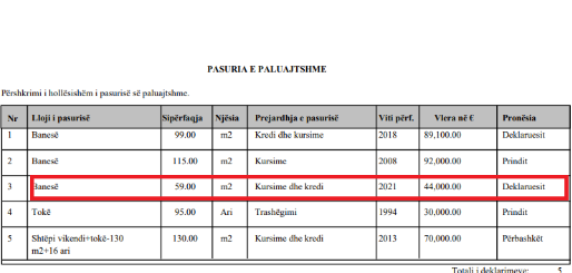 Banesa figuron se është blerë në vitin 2021 përmes kursimeve e kredisë, e cila ka kushtuar 44 mijë euro.