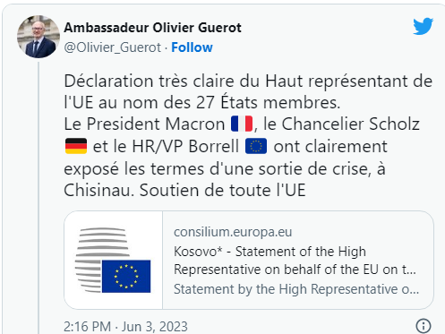 Dhe për këtë ka folur edhe Guerot i cili thotë se thotë se qëndrimi i Përfaqësuesit të Lartë të BE-së në emër të 27 shteteve është shumë i qartë.