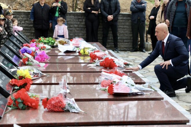 Kreu i Aleancës për Ardhmërinë e Kosovës (AAK), Ramush Haradinaj, ka kujtuar sot viktimat e masakrave të ndodhura në Beleg, Irzniq dhe Poterq të Klinës.