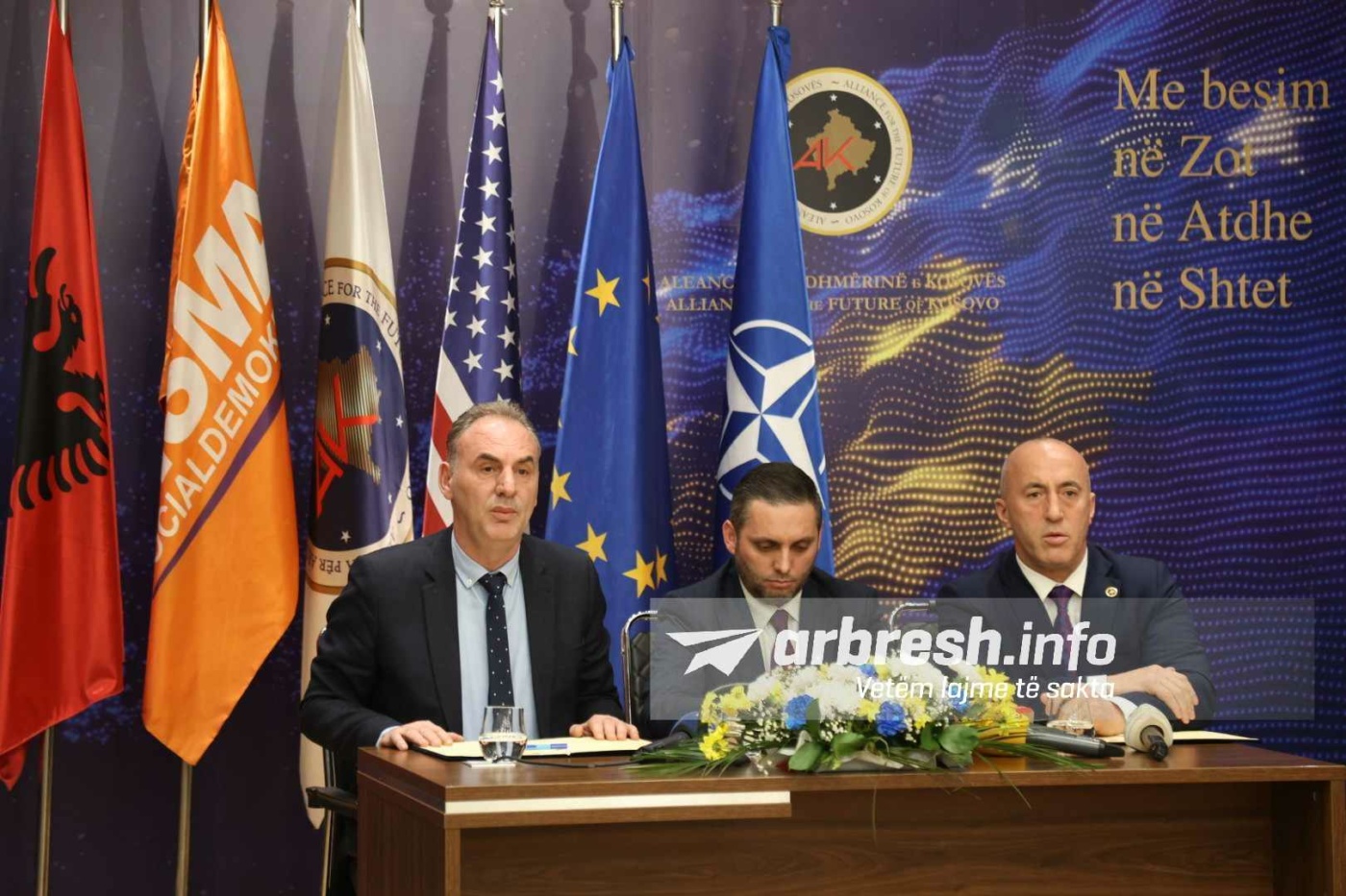 “Ky bashkim i sotëm është lajm i mirë për Kosovën dhe popullin e Kosovës, është shpresë për ata që dëshirojnë të shohin familjen nën kujdesin shtetëror dhe në fokusin shtetëror. Sot kur po e nënshkruajmë bashkëpunimin politik nuk na shtyn asgjë e keqe por atdhedashuria për ta parë vendin tonë të zhvilluar me një fuqi konservatore. Duhet të shkojmë në zgjedhje më shpejtë. “, tha Haradinaj./Arbresh.info