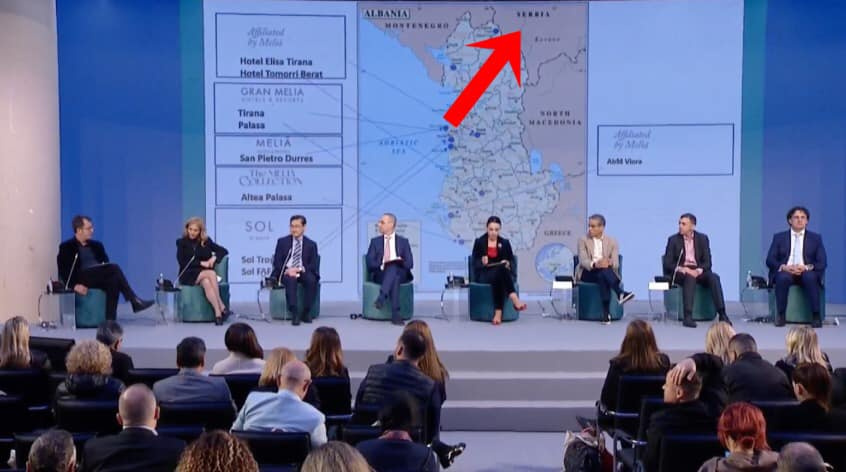 Harta e shfaqur në Konventën Ndërkombëtare të Turizimit të organizuar në Shqipëri ku Kosova nuk shfaqej si pjesë e Serbisë, ka ngjallur mjaft diskutime në publik.