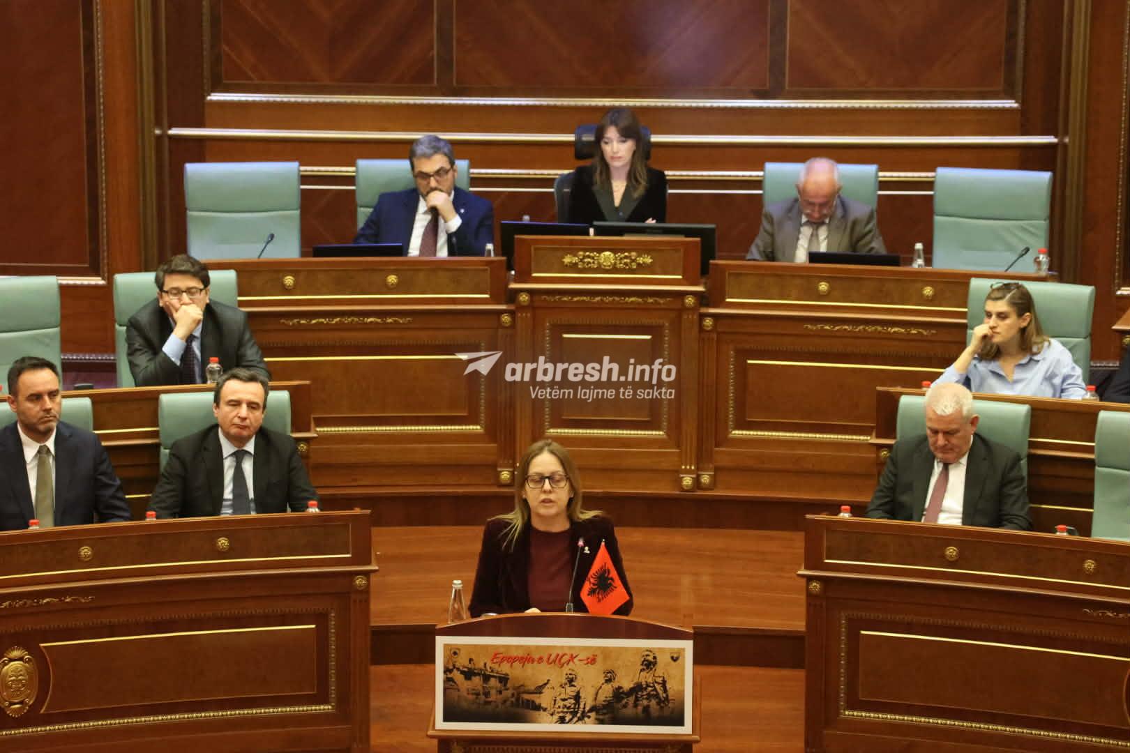 Kryetarja e Kuvendit të Kosovës, Albulena Haxhiu ia ka ndërprerë fjalën deputetes Hykmete Bajrami, pasi sipas saj ajo ka mbajtur fjalim që nuk i përkasin rendit të ditës.