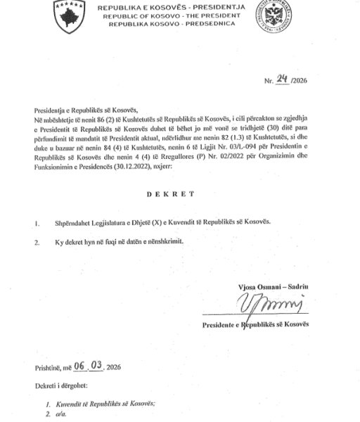 Në një shkresë zyrtare për deputetët e Kuvendit, kryetarja Haxhiu u ka bashkëngjitur edhe dekretin e presidentes.