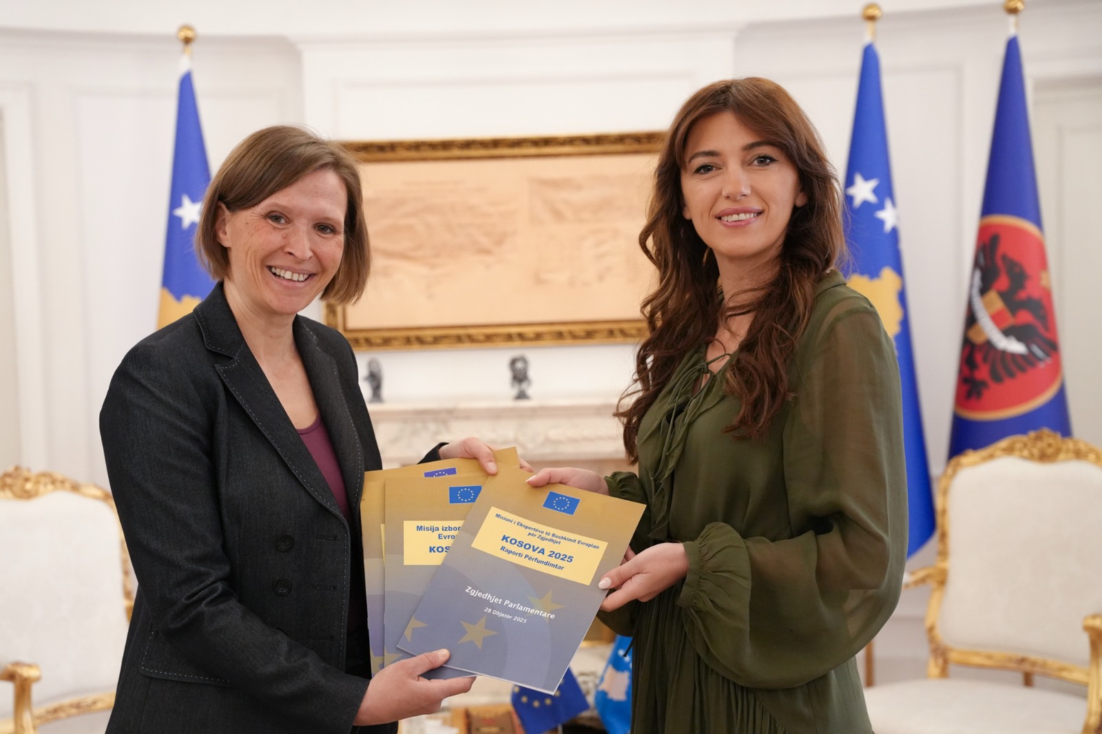Në këtë takim, Palatova i dorëzoi U.D. Presidentes Haxhiu, raportin përfundimtar të Misionit të Ekspertëve të Bashkimit Evropian për zgjedhjet parlamentare të vitit 2025, si dhe raportin lidhur me misionin vlerësues për zgjedhjet komunale të mbajtura në tetor dhe nëntor 2025, me ç’rast theksoi se këto procese zgjedhore ishin dëshmi e pjekurisë demokratike të Kosovës.