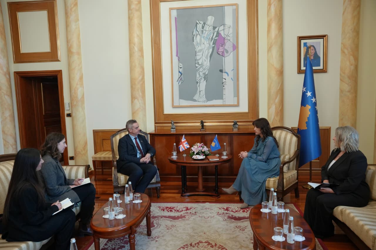 Kryetarja e Kuvendit, Albulena Haxhiu, priti sot në takim Ambasadorin e Mbretërisë së Bashkuar në Kosovë, Jonathan Hargreaves, me të cilin diskutoi lidhur me marrëdhëniet e shkëlqyera midis dy vendeve dhe për zhvillet aktuale në Kosovë.
