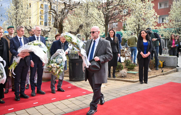 Ambasadori amerikan, Jeff Hovenier së bashku me presidenten e vendit, Vjosa Osmani kanë bërë homazhe te Memoriali i ushtarëve të rënë të NATO-s për lirinë e Kosovës, në 25 vjetorin e fillimit të intervenimit të NATO-s.