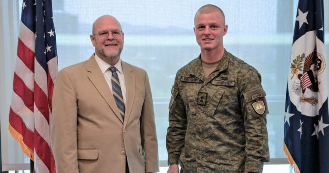 Ambasadori amerikan në Kosovë, Jeff Hovenier ka pritur sot në takim ushtarin e FSK-së, Ylli Dalladaku i cili diplomoi në akademinë ushtarake amerikane, WestPoint.