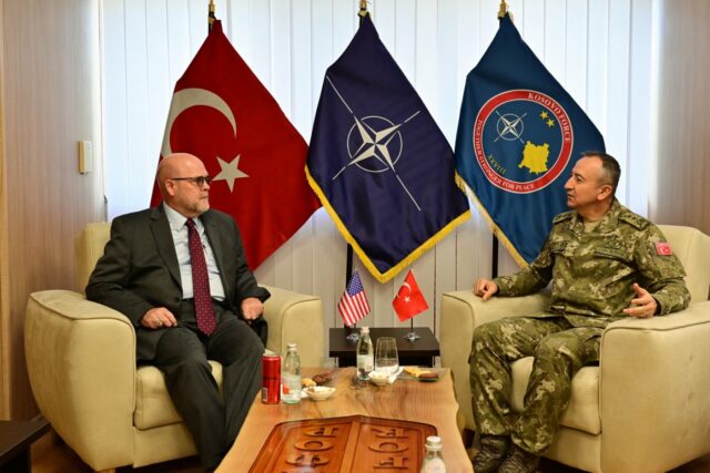 Ambasadori amerikan në Kosovë, Jeffrey Hovenier, është takuar në Shtabin e Përgjithshëm në kampin “Film City”, me komandantin e KFOR-it, Ozkan Ulutas me të cilin biseduan për sigurinë në Kosovë.