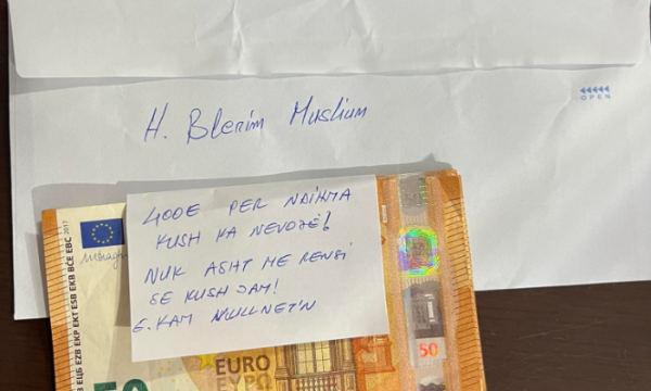 “Sapo e hapa derën, për befasi nuk pashë askënd, vështrova rreth e rrotull, e papritur pashë një zarf. Në të ishte një shumë e parave, 500 euro. Mbeta i befasuar kur bashkë me paratë e gjeta edhe një letër, në të cilën dëftohej se 100 euro janë të destinuara, 400 të tjerat thoshte jepi aty ku ka nevojë”, ka shkruar hoxha në Facebook.