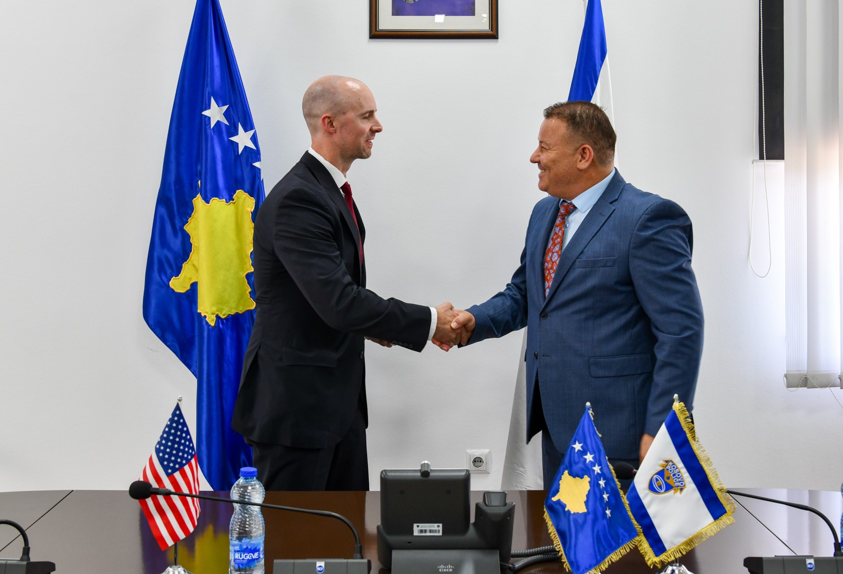 Drejtori i Përgjithshëm i Policisë së Kosovës Kolonel Gazmend Hoxha ka pritur sot në një takim njoftues Atasheun e ri Ligjor të FBI-së, Brendan Collins, i cili mbulon Kosovën me seli në Sofje të Bullgarisë.