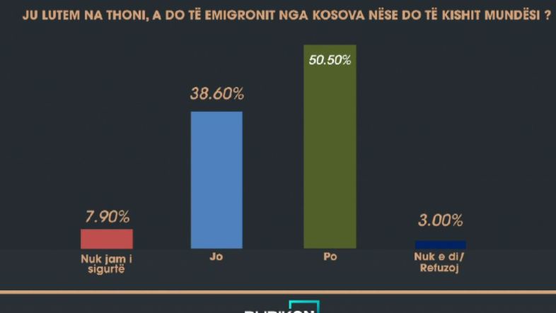 50.5 % e 1050 respondentëve janë përgjigjur me “po” në pyetjen “A do të emigronit nga Kosova nëse do të kishit mundësi?”.