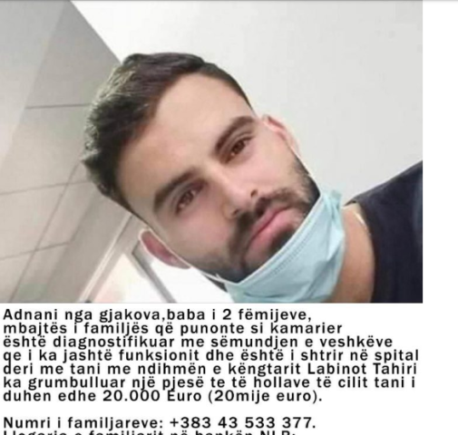 Si pasojë e kësaj sëmundje, Adnani i cili është baba i dy fëmijëve, është i shtrirë në spital dhe ka nevojë për ndihmën e vullnetmirëve.