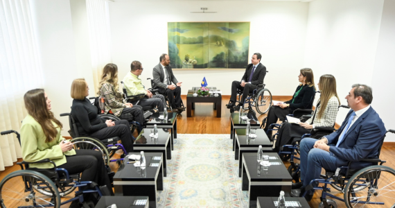 Kryeministri i Kosovës, Albin Kurti, ka pritur në takim përfaqësuesit e Handikosit me rastin e 1 Marsit, Ditës Ndërkombëtare të Përdoruesve të Karrocës. Kurti tha se synimi i Qeverisë është të ofrojë mundësi dhe qasje të barabartë për të gjithë, mundësi për pjesëmarrje aktive në shoqëri, lëvizje të lirë dhe jetë të dinjitetshme. Në takim … Continue reading I ulur në karrocë, Kurti takohet me përfaqësuesit e Handikosit