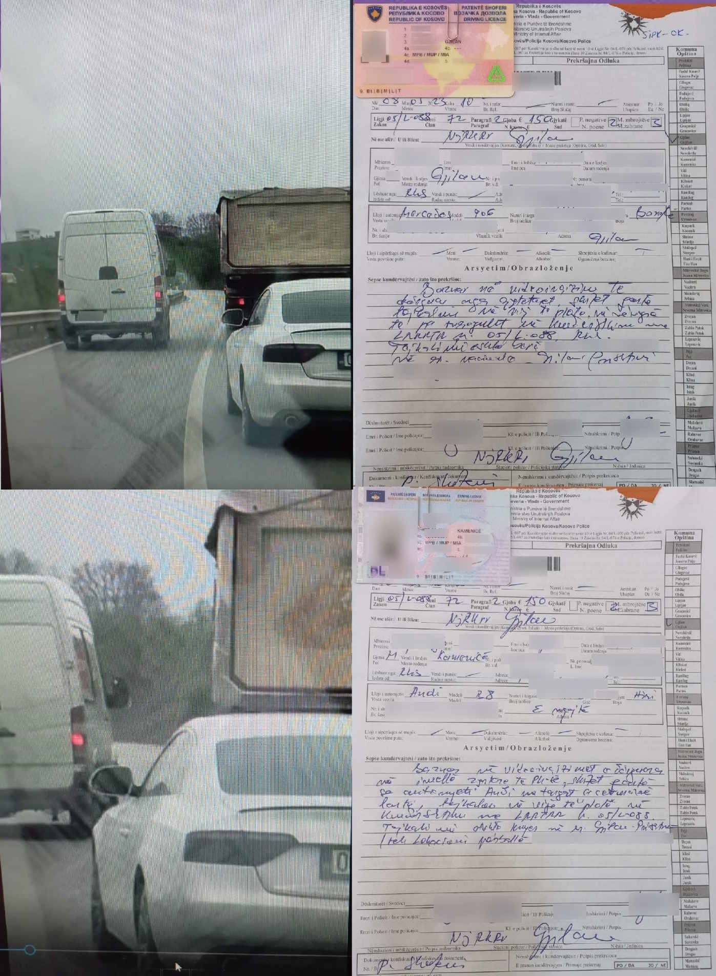 Siç thuhet në njoftim, njësiti rajonal i komunikacionit rrugor Gjilan, përmes veprimeve operative ka arritur që të identifikoj të dy kundërvajtësit ndaj të cilëve ka shqiptuar gjoba për secilin veç e veç në vlerë prej 150 euro, shqiptuar nga dy pikë negative dhe ndaj që të dy kundërvajtësve ka shqiptuar masën mbrojtëse të heqjes së patentë shoferit në afat prej tre muaj.