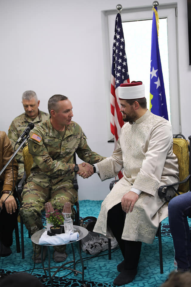 “Përveç se nderë, ishte edhe privilegj i veçantë të mirëpresim sot miqtë tanë nga KFOR-i Amerikan, Kapelanin Major Paul Girdley me bashkëpunëtorë, nga Kampi Ushtarak Bondsteel. Major Girdley, mbajti një ligjëratë frymëzuese dhe shumë të dobishme për të gjithë ne, e cila u vlerësua lartë edhe nga besimtarët”, ka shkruar ai në llogarinë e tij në Facebook.