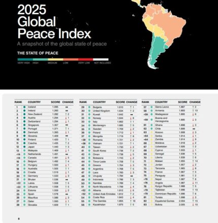 Një javë më parë, më 19 qershor “Instituti për Paqe dhe Ekonomi” publikoi Indeksin Global të Paqes 2025. Në këtë indeks përfshihen të gjitha shtetet e botës, përfshirë këtu dhe Kosova.