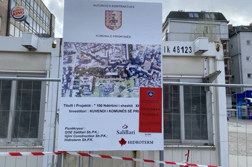 Sipas një fotografia të publikuar nga KOHA sot gjatë ditës, pllakatës së projektit i është vendosur njoftimi për ndalim të punimeve.