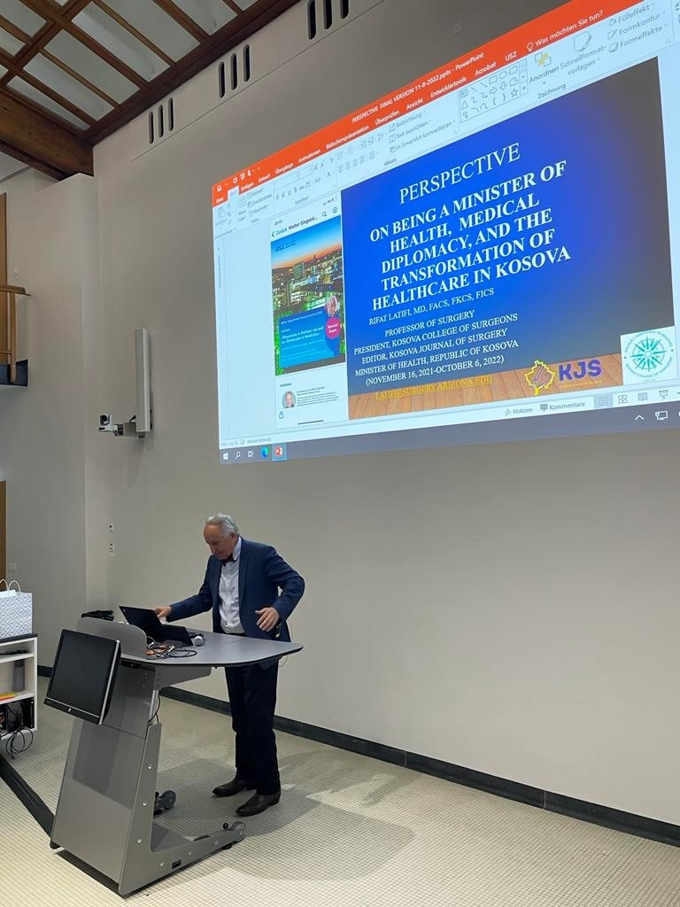 Kryetari Themelues i Kolegjit të Kirurgëve të Kosovës dhe ish- Ministri i Shëndetësisë i Republikës së Kosovës, Prof. Dr. Rifat Latifi, gjatë qëndrimit të tij në Zvicër, mbajti një prezantim në Universitetin e Zyrihut, të titulluar: