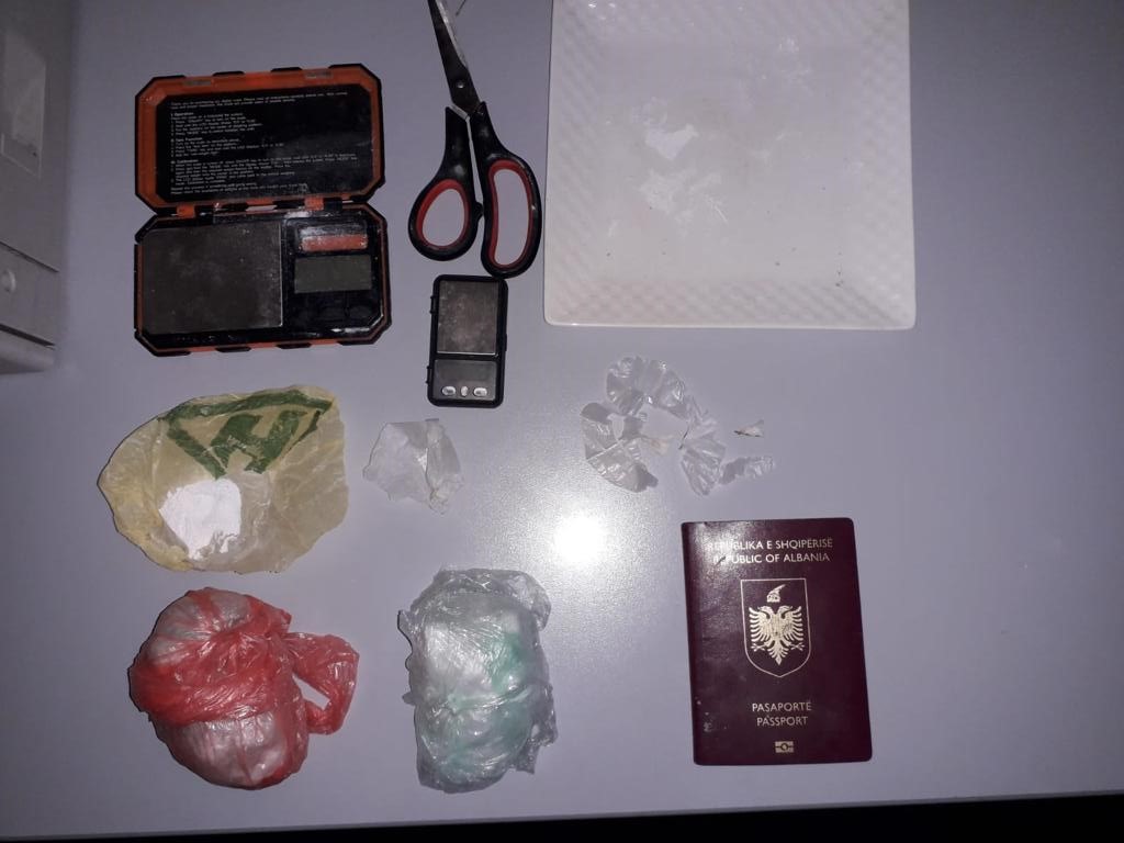 “Pas kontrollit të së dyshuarës, tek e njëjta janë gjetur dy qese me substancë të dyshuar pluhur ngjyrë të bardhë e dyshuar për kokainë. E dyshuara e lartcekur është arrestuar në vendin e ngjarjes.”, thuhet në njoftimin për media.