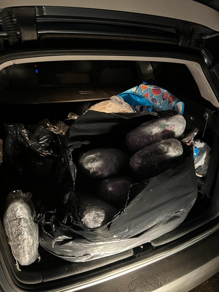 “Gjatë kontrollimit të veturës janë gjetur rreth 40 kg substancë narkotike, e cila dyshohet të jetë e llojit marihuanë, e ndarë në 40 paketime të mbështjella me qese plastike. Vlera e kësaj sasie sillet rreth 80 mijë euro dhe dyshohet se vendi ynë ishte transit i kalimit të kësaj sasie, kurse destinacion final ishin vendet e perëndimit”, thuhet tutje në njoftim.