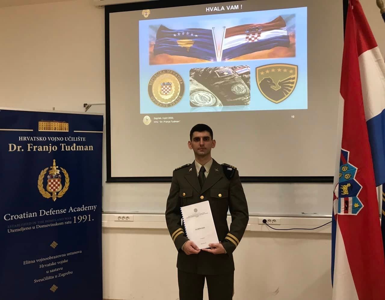 Pas shkollimit katërvjeçar në Akademinë Ushtarake të Kroacisë dhe paralelisht në Universitetin e Zagrebit, kadeti ynë Gazmend Pllana diplomoi me sukses të lartë në drejtimin ‘Menaxhment dhe lidership ushtarak’.
