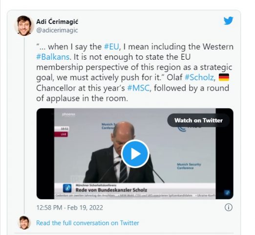 Kancelari gjerman, Olaf Scholz, ka mbajtur një fjalim sot në Konferencën e Mynihut, me të cilin mund të thuhet se ngjall shpresa sa i përket zgjerimit të BE’së drejt vendeve të Ballkanit Perëndimor.