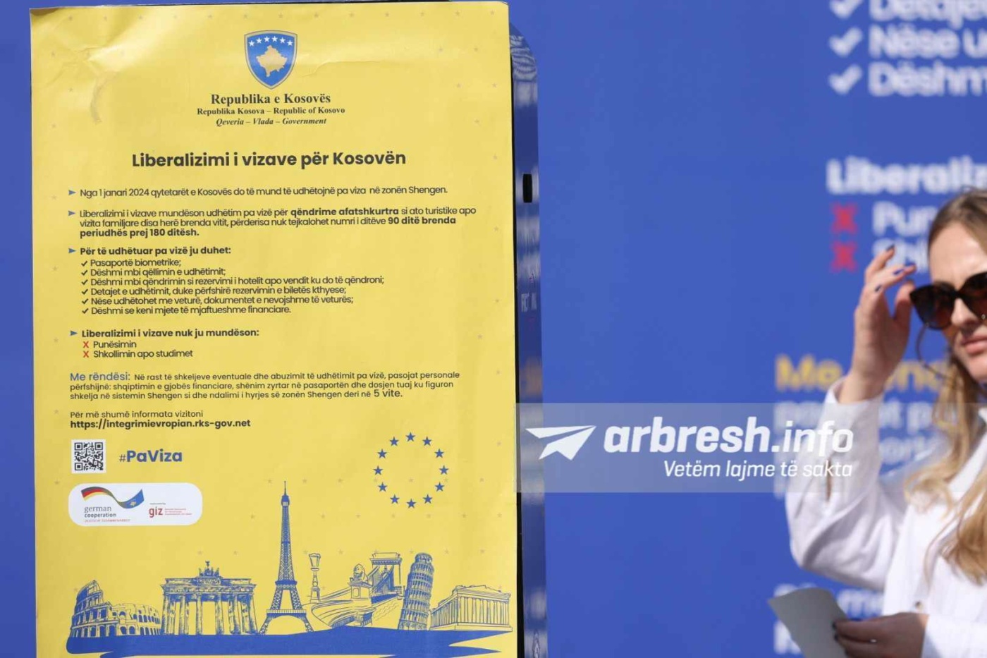 Duke filluar nga 1 janari 2024, me pasaportë të Kosovës, mund të udhëtohet pa viza për qëndrime afatshkurtra nëpër zonën Shengen. Kjo përfshin vizita turistike dhe vizita te miqtë apo familjarët.