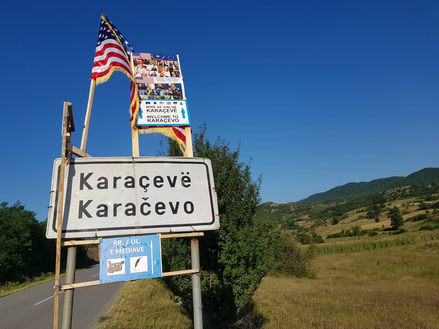 Tabelat me emrin e ri të kësaj rruge janë vendosur sot poshtë tabelave ku shkruan Karaçevë e ku po ashtu janë vendosur edhe flamujt e Kosovës, Shqipërisë dhe ShBA-së.