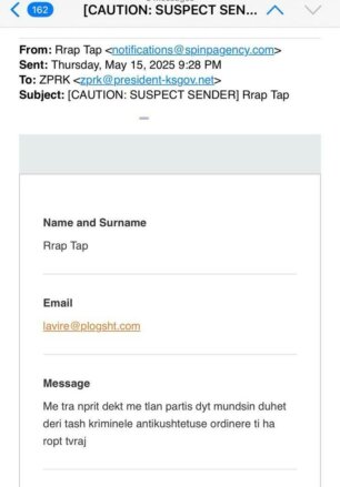 E-maili është dërguar më 15 prill, ditën kur Osmani nisi konsultimet me liderët e partive në kërkim të një zgjidhje për dalje nga ngërçi i krijuar.