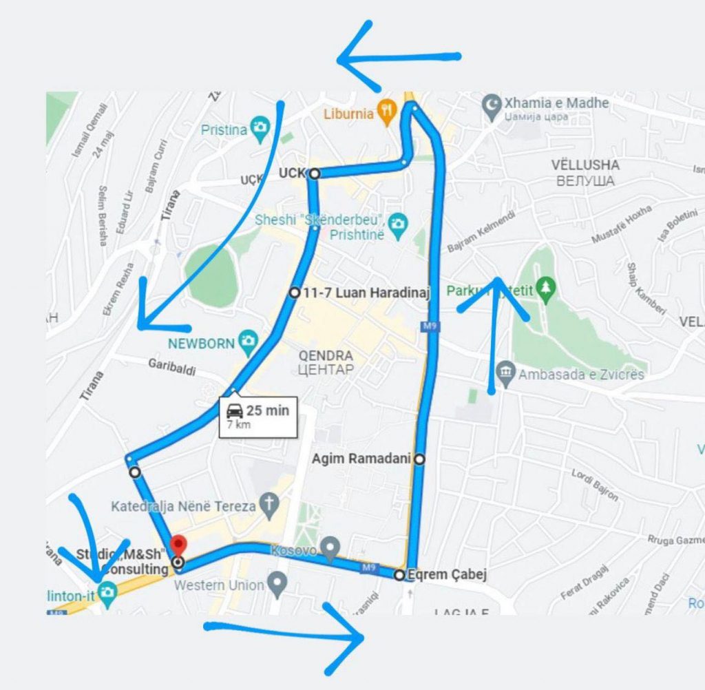 – Rruga “UÇK” nga Parlamenti e deri te ish-Kino Rinia.