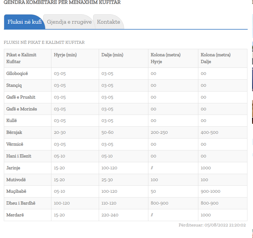 Sipas Qendrës Kombëtare për Menaxhimin Kufitar (raporti i orës 20:14), pritjet më të gjata janë në Merdar, për dalje nga Kosova. Në këtë pikëkalim kufitar pritjet janë deri në 4 orë për të dalë nga Kosova, ndërsa 15-20 minuta për të hyrë.