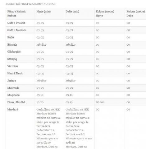 Koha për të hyrë në Kosovë sipas Qendrës për Menaxhim Kufitar është 10 deri në 20 minuta, kurse për të dal 5 deri në 10 minuta.