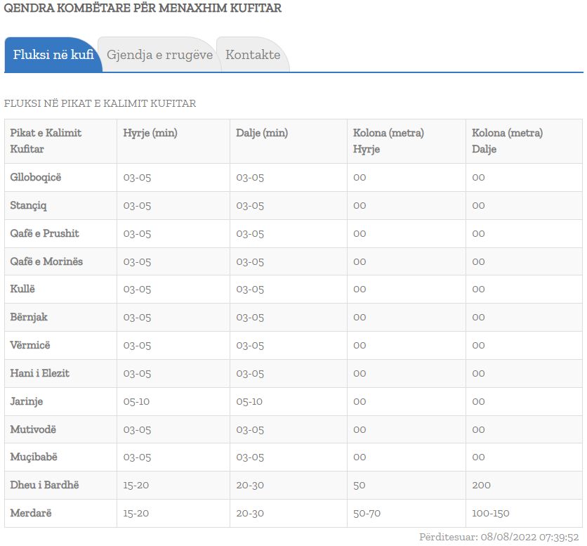 Në të gjitha pikë kalimet e tjera kufitare, në dalje, pritjet nuk shkojnë më shumë se 5 minuta, ndërsa në hyrje në asnjërën prej tyre nuk raportohen vonesa./arbresh.info/