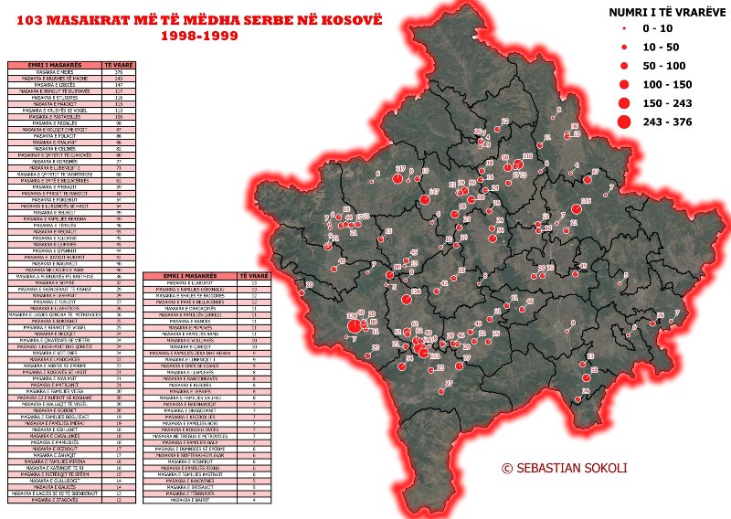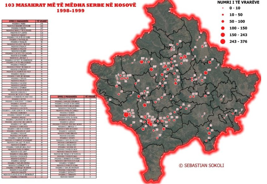 Hartografi Sebastian Sokoli ka publikuar një hartë ku shënjohen masakrat e viteve 1998-1999.