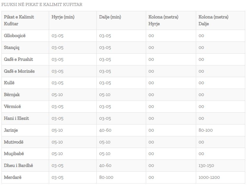 Sa i përket pikave tjera kufitare, fluksi i daljes është më i vogël. Kryesisht hyrja është 3 deri në 5 minuta, ndërsa dalja është 5 deri në 10 minuta.