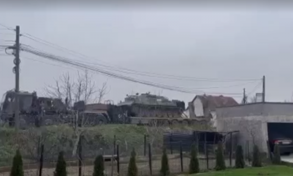 Një kolonë ushtarake e KFOR-it me automjete të rënda është parë duke shkuar në drejtim të Mitrovicës së Veriut.