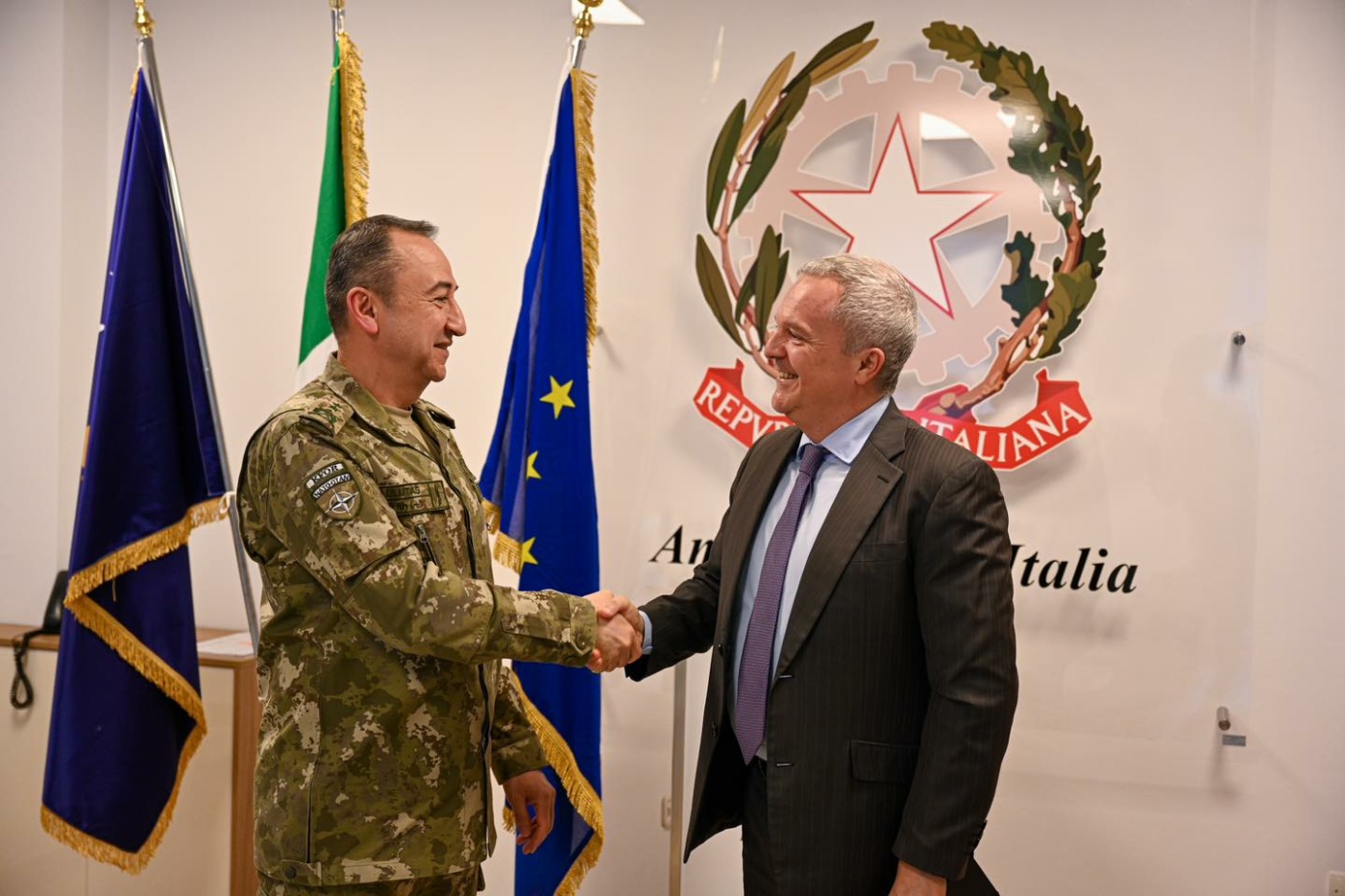 Sipas njoftimit, gjeneralmajor Ulutash ndau pikëpamjet me ambasadorin De Riu mbi tendencat më të fundit të sigurisë dhe përshëndeti kontributin e gjatë të Italisë për KFOR-in dhe për stabilitetin rajonal, shkruan Arbresh.info.