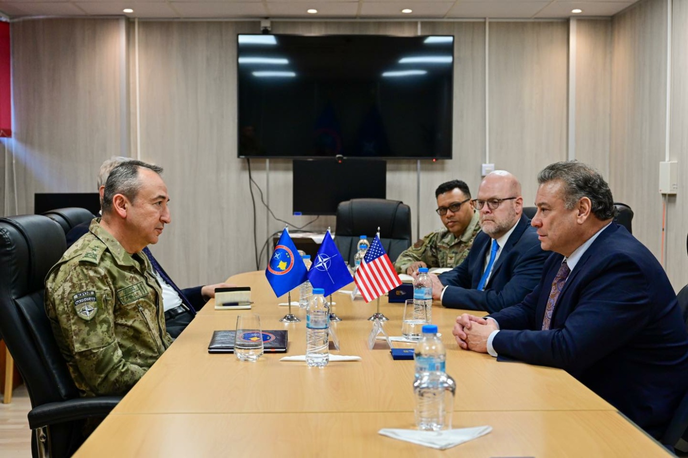 “Komandanti i misionit të KFOR-it të udhëhequr nga NATO, gjeneralmajor Özkan Ulutaş, u takua sot me Zëvendës-ndihmës Sekretarin Amerikan për Çështjet Evropiane dhe Euroaziatike, Gabriel Escobar dhe ambasadorin e Shteteve të Bashkuara të Amerikës në Kosovë, Jeffrey Hovenier, në Shtabin e KFOR-it, në Camp Film City, në Prishtinë. Ky takim ofroi mundësinë për të shkëmbyer mendime mbi një sërë temash që kanë të bëjnë me sigurinë e qëndrueshme në mbarë Kosovën dhe me stabilitetin rajonal”, thuhet në njoftimin e KFOR-it.