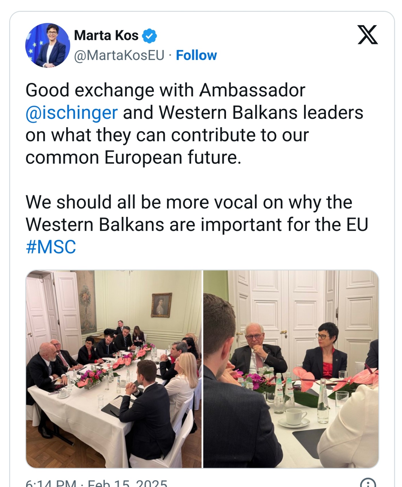 Përmes një postimi në rrjetin social “X’, ku ka ndarë edhe foto nga takimi, Kos shprehet se Ballkani Perëndimor është i rëndësishëm për Bashkimin Evropian.