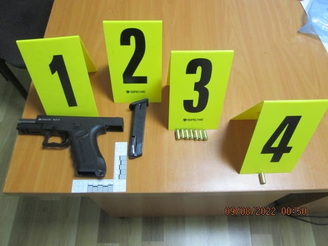 Me të pranuar informacionin janë ndërmarrë veprime policore, ku pas një kohe të shkurtër në rrugën ,,Ana Lin ” në Vushtrri është identifikuar vendi ku në një aheng familjar ishin dëgjuar të shtënat, në cilësi të provave materiale është konfiskuar një armë e shkurt e llojit pistoletë dhe gjashtë gëzhoja.