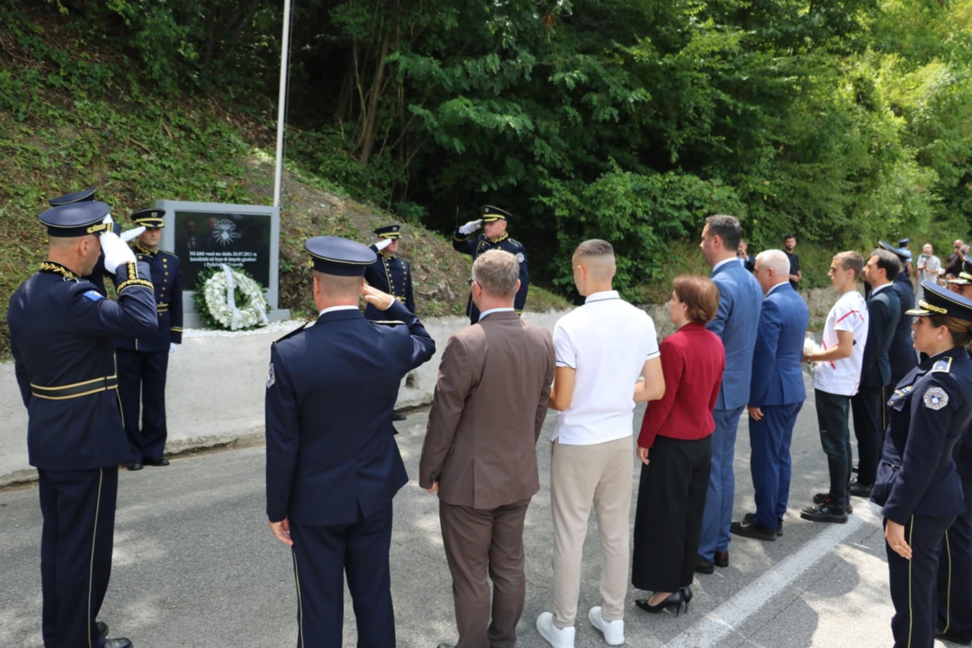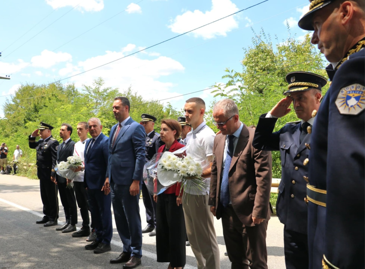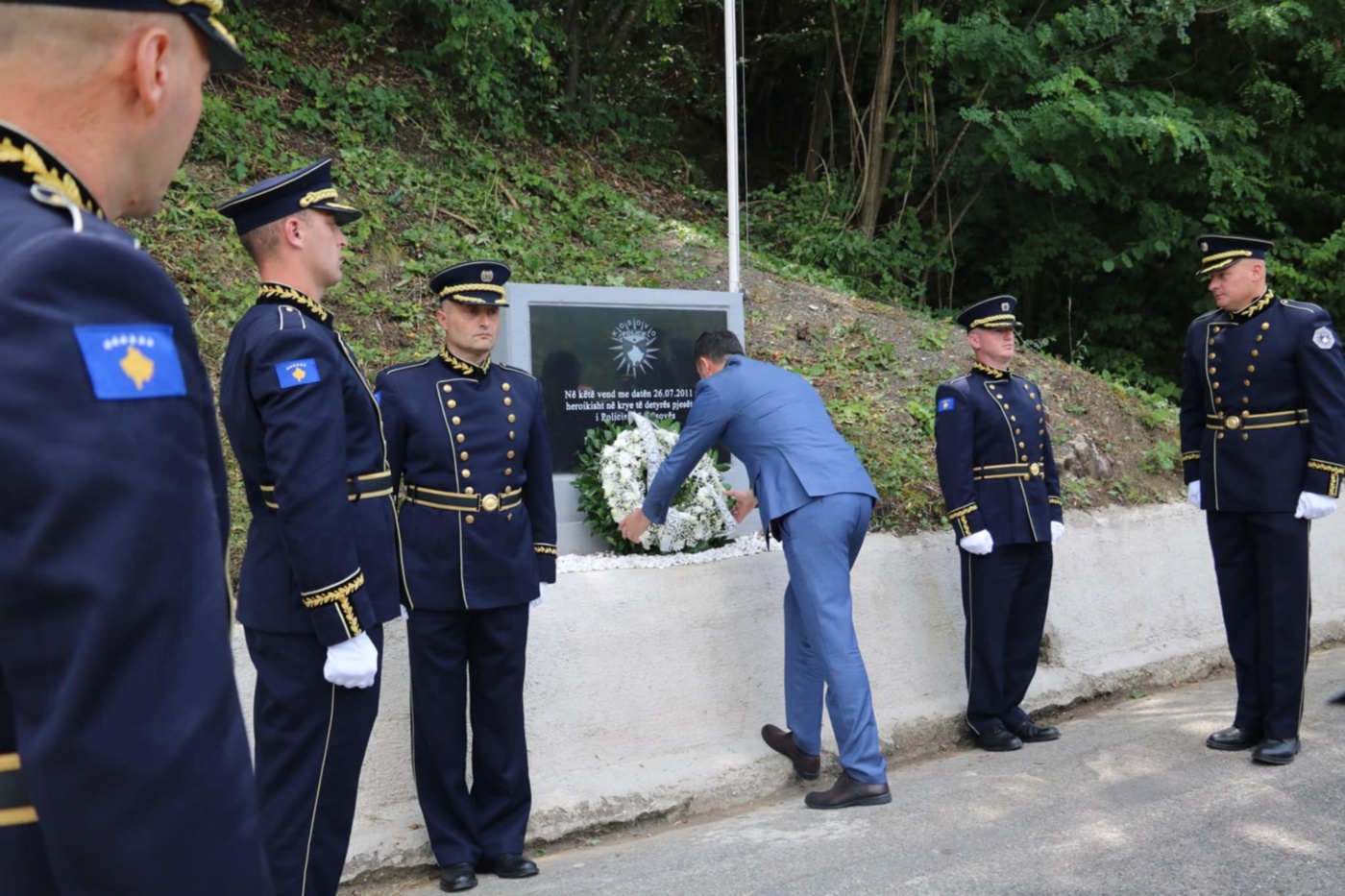 Konjufca, së bashku me zëvendëskryeministren, njëherësh ministre e Punëve të Jashtme dhe Diasporës, Donika Gërvalla, zëvendëskryeministrin Besnik Bislimi, ministrin e Punëve të Brendshme, Xhelal Sveçla dhe drejtues të lartë të Policisë së Kosovës, bëri nderime dhe vendosi lule pranë lapidarit të policëve të rënë në krye të detyrës.